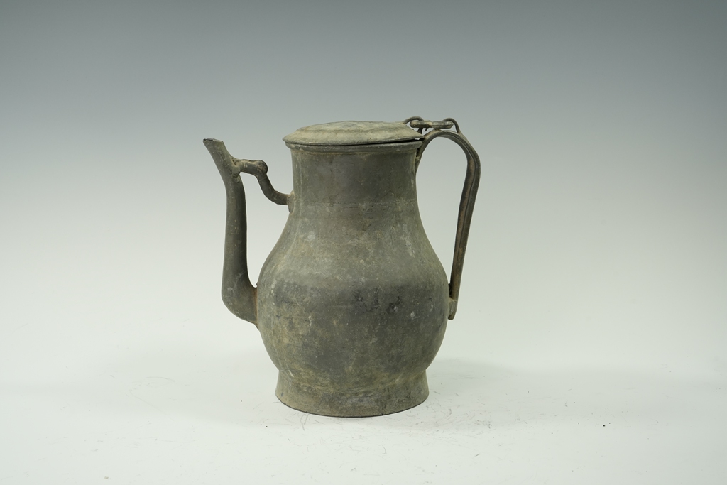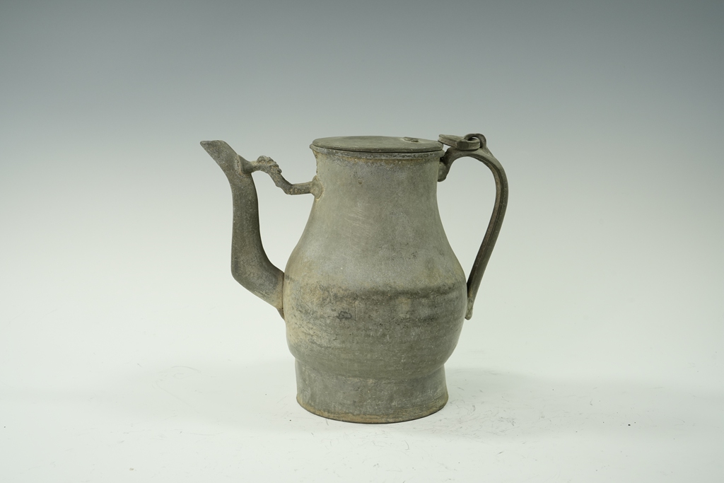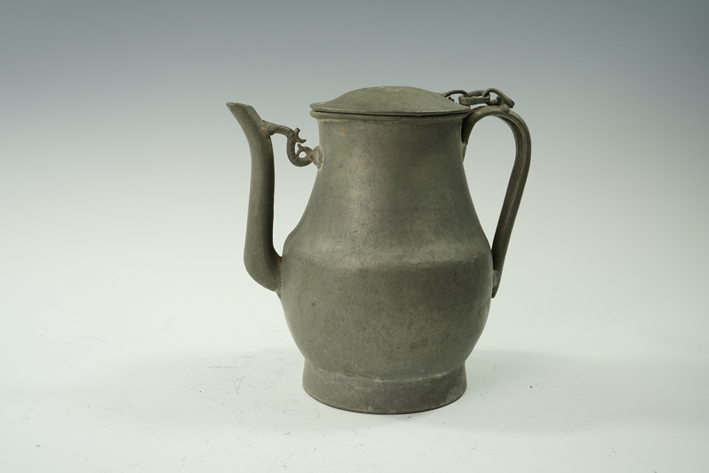 锡制素面束腰长流把壶