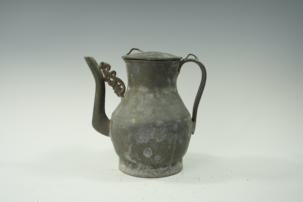 锡制兽纽带盖提梁酒壶