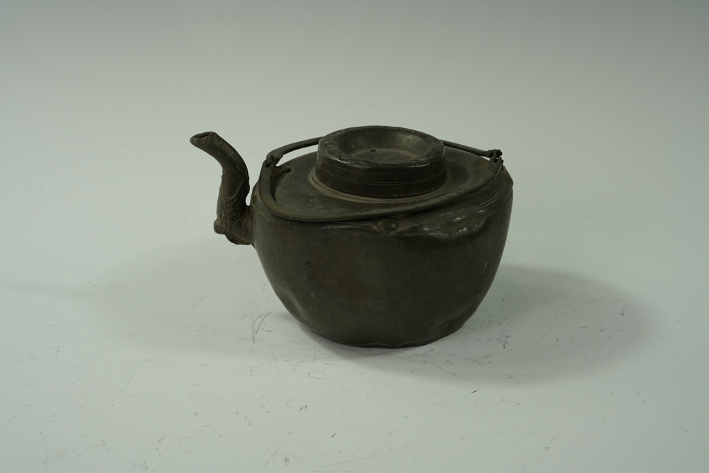 锡制鼓腹四系提梁盖壶