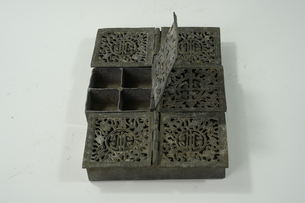 锡制方形镂雕花纹首饰盒一组