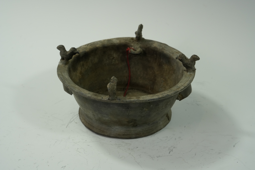 锡制双耳鸟纹香炉