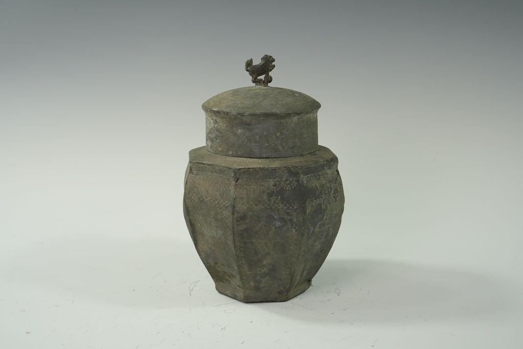 锡制八棱鼓腹兽钮套盖罐