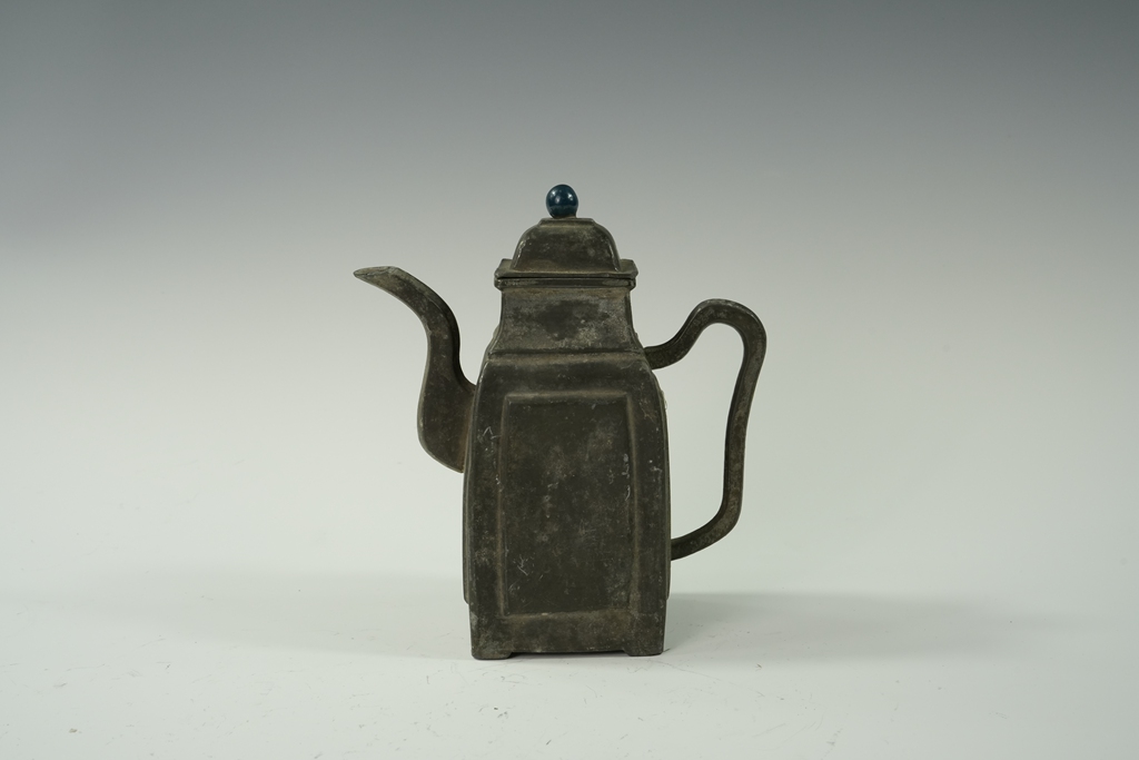 锡制素面带盖方形茶壶