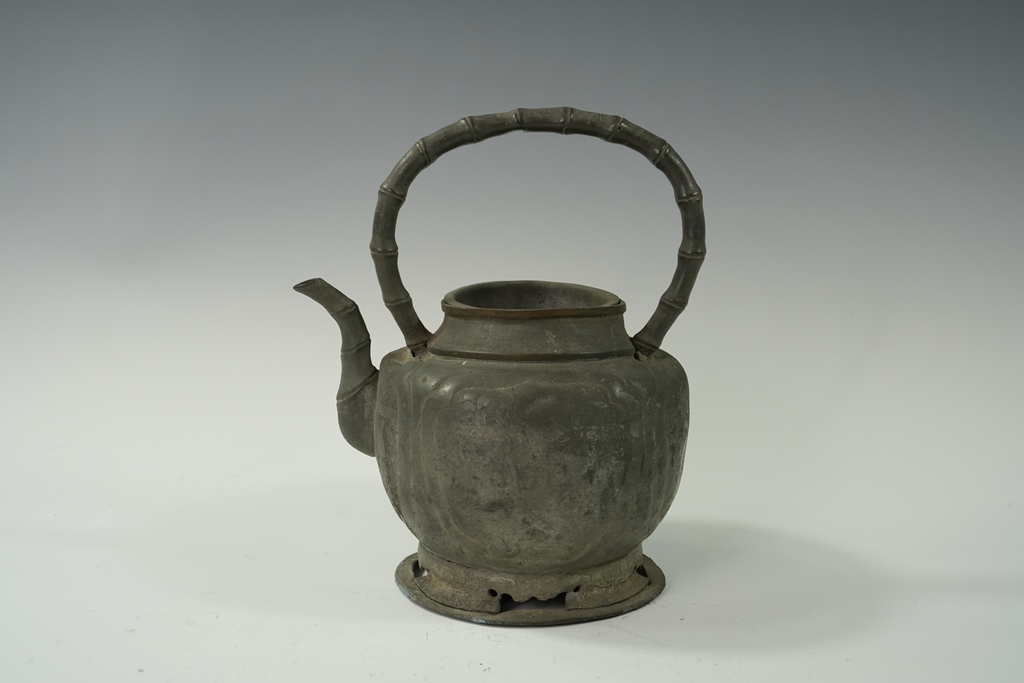 锡制刻花竹节提梁茶壶