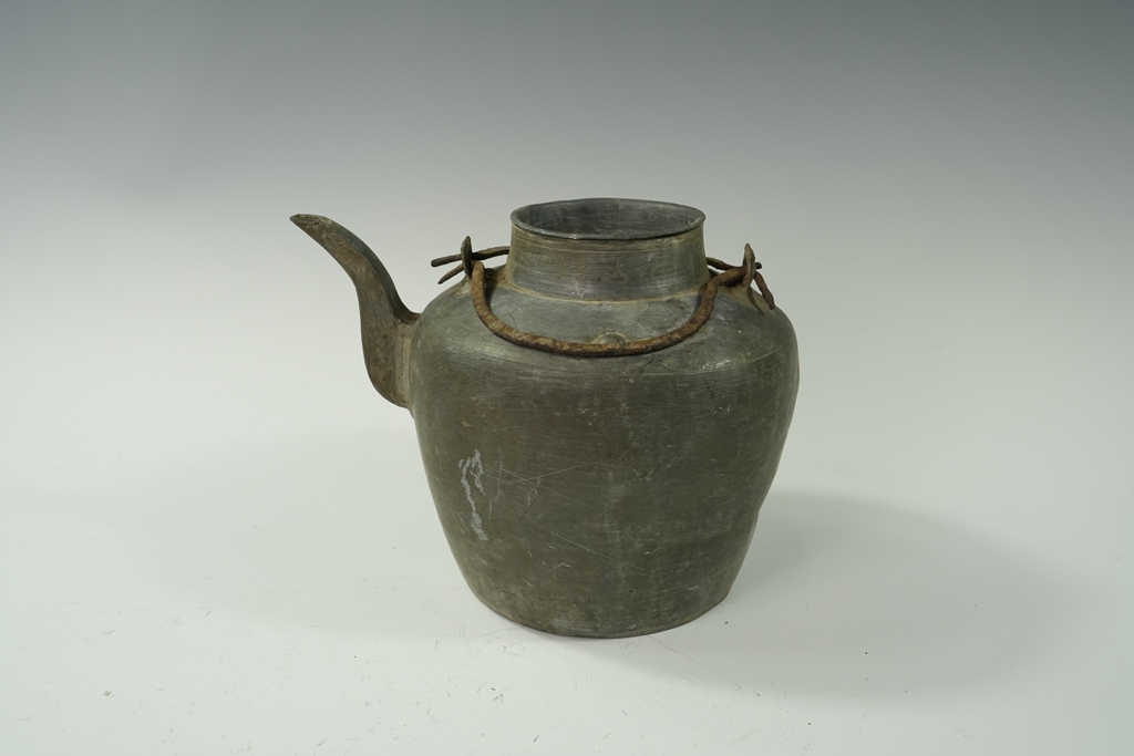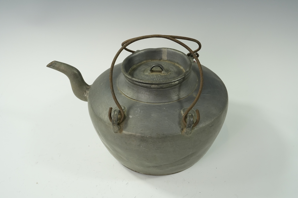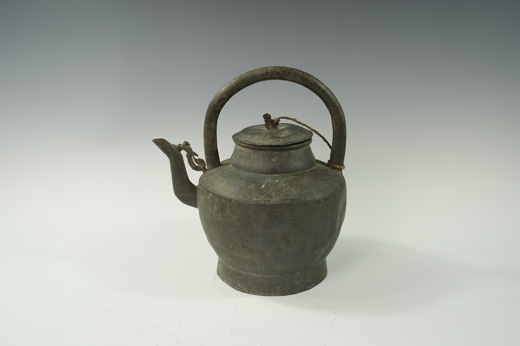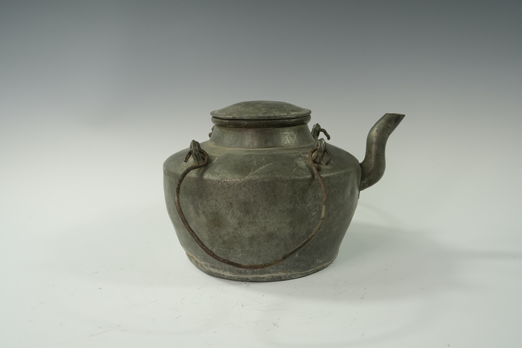 锡制素面四系提梁茶壶