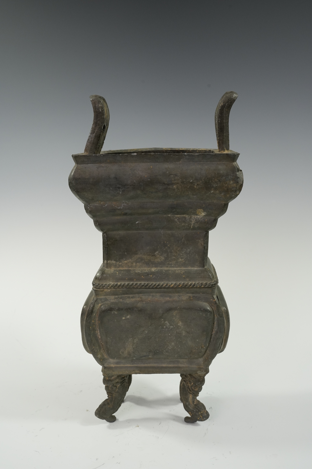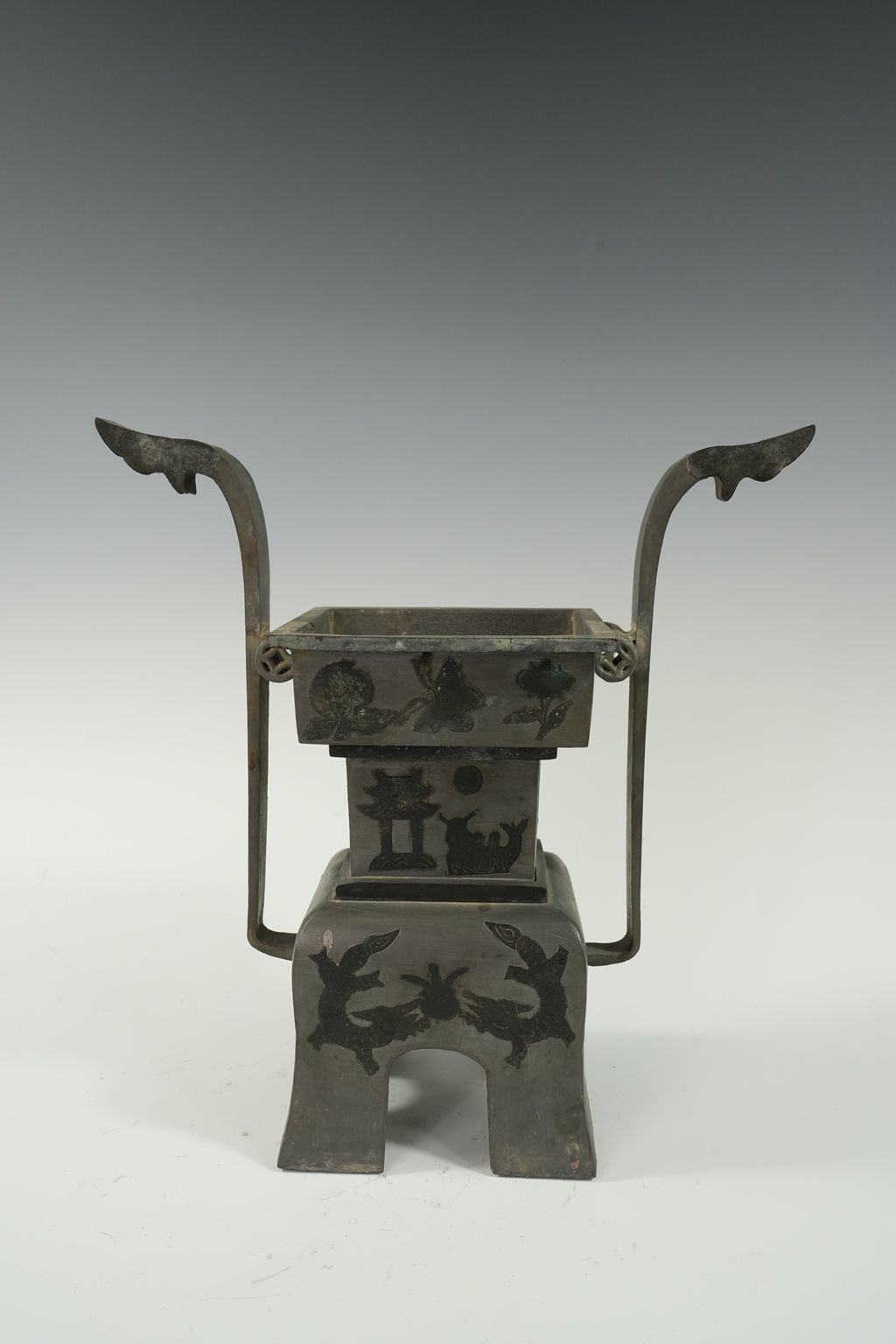 锡制双耳四足束腰方口炉