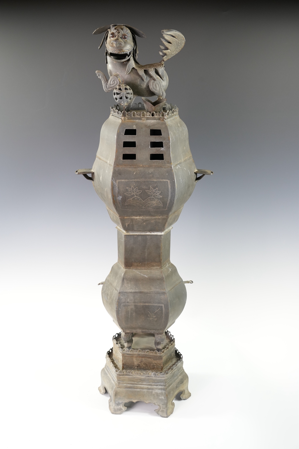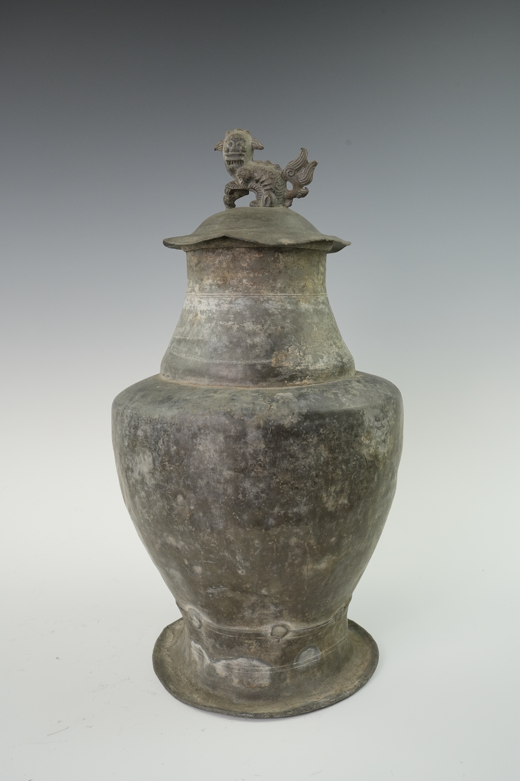 锡制荷叶狮钮将军罐