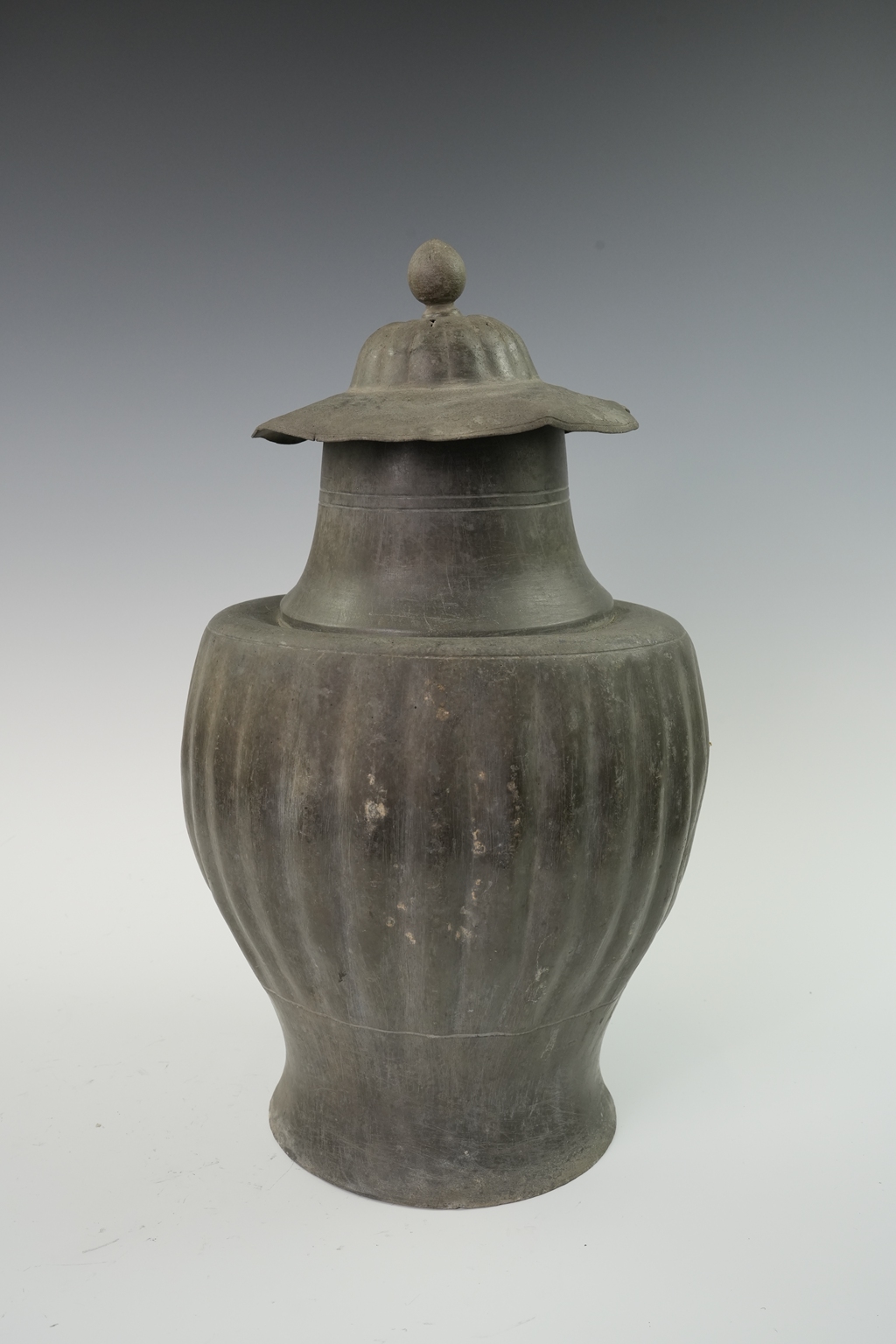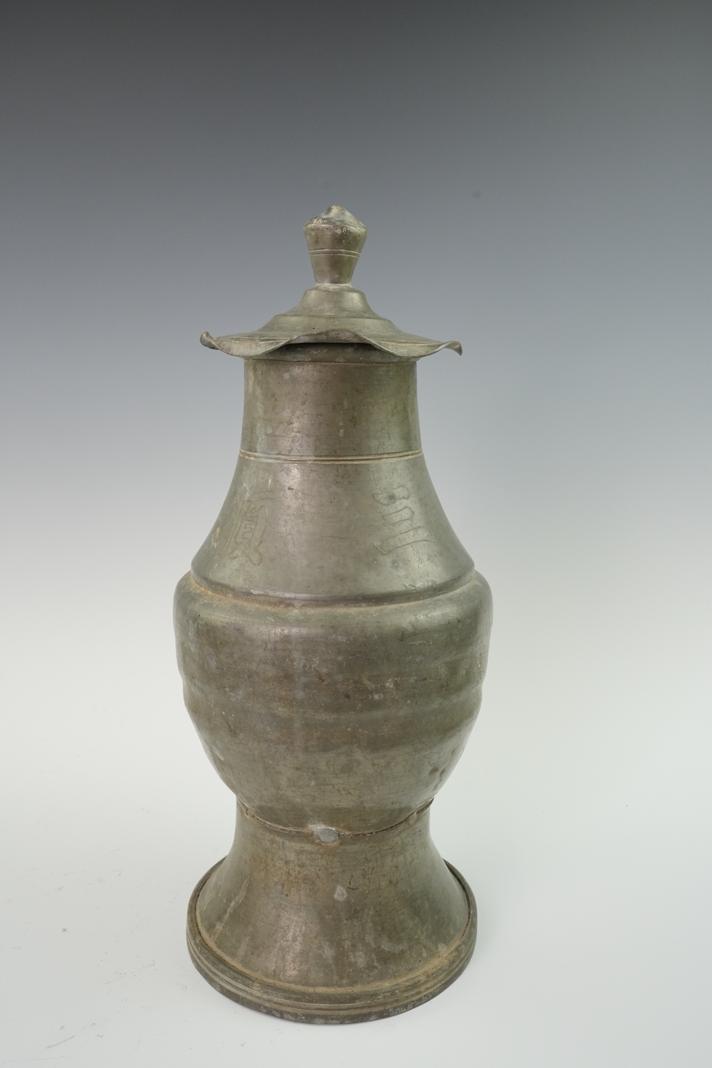 锡制束足荷叶盖罐