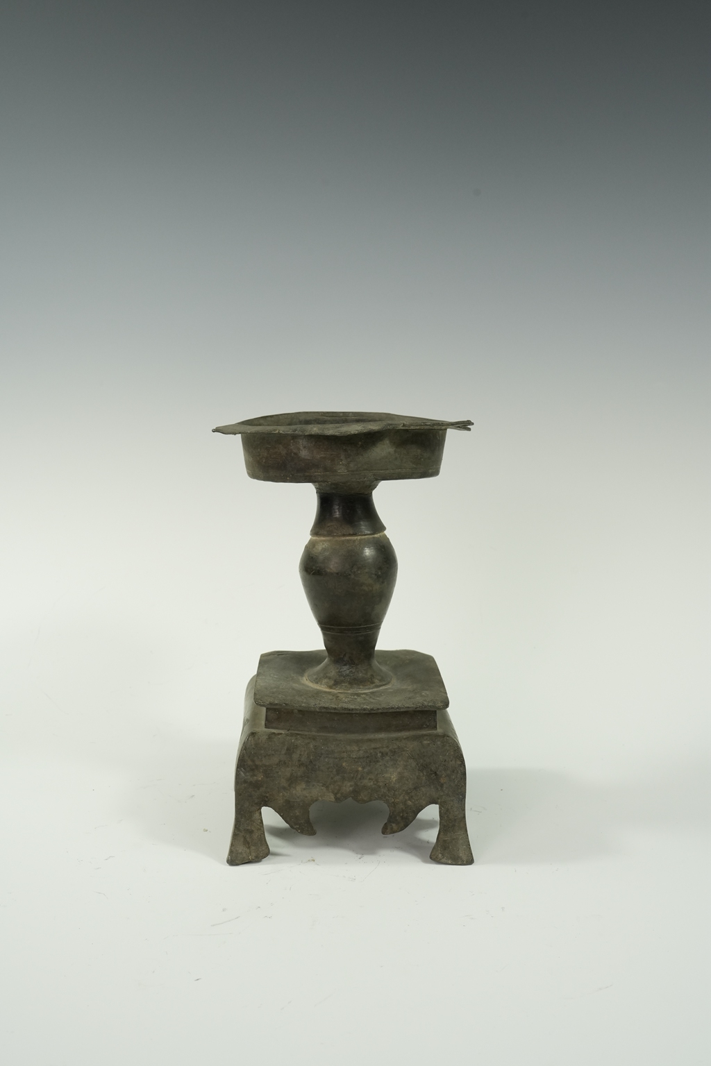 锡制方底四足圆托烛台