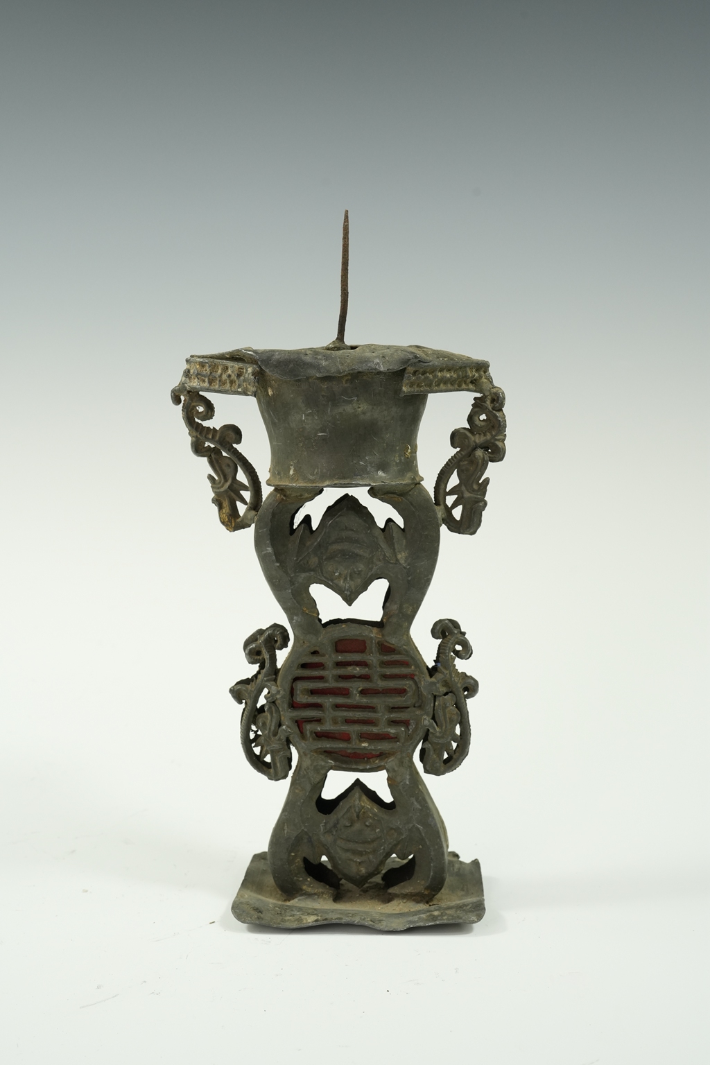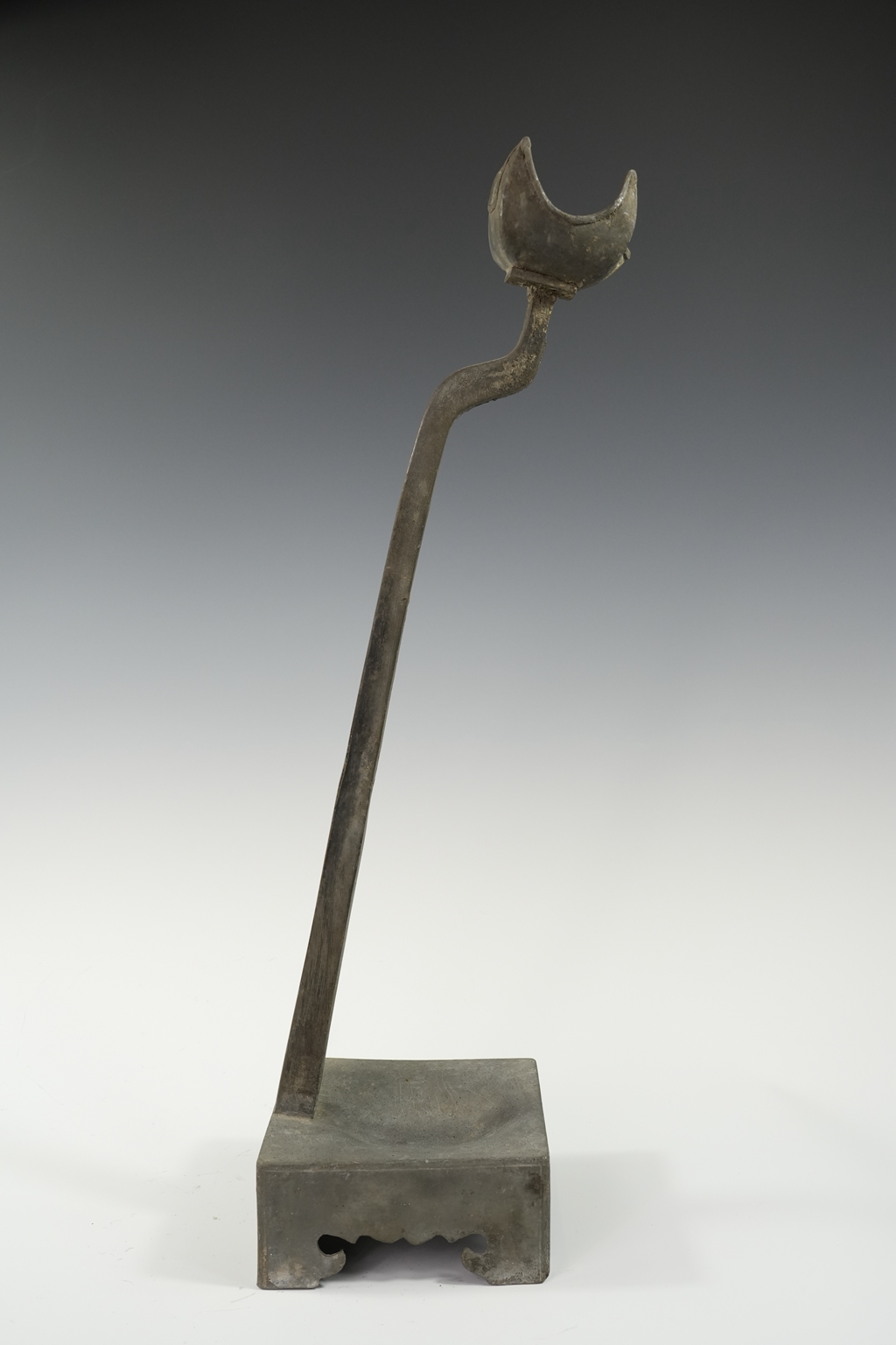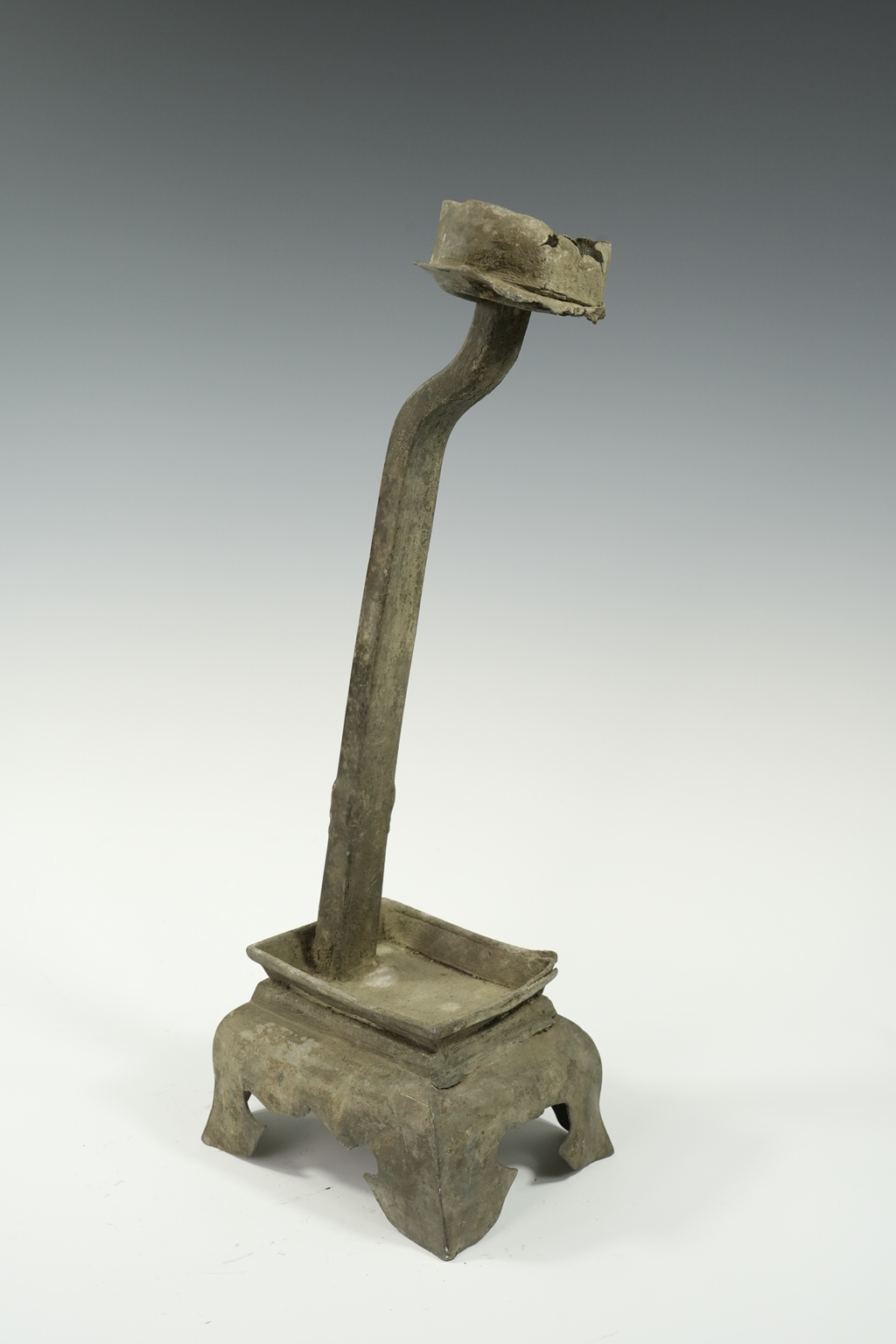 锡制方底四足油灯托