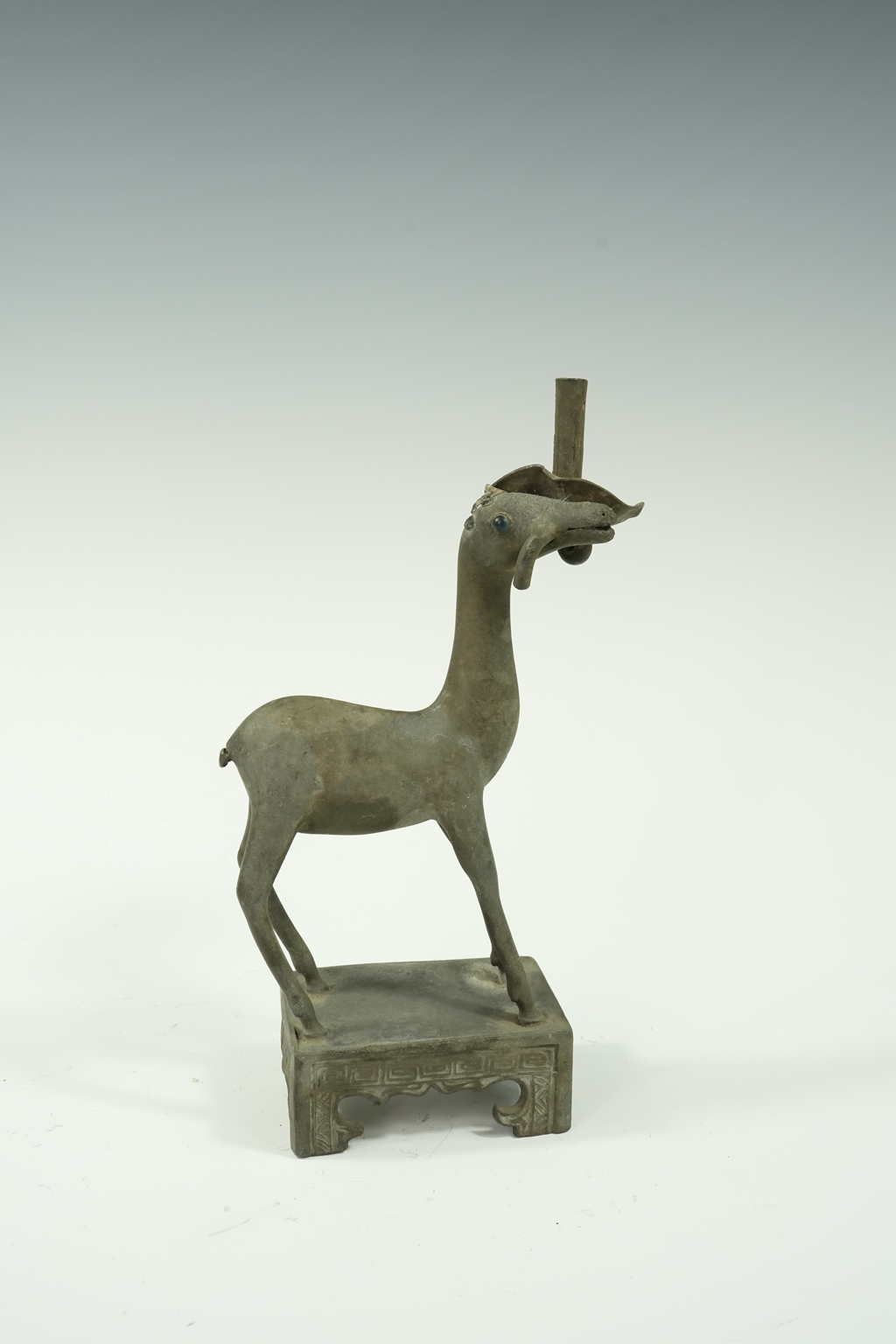 锡制“鹿衔灵芝”烛台