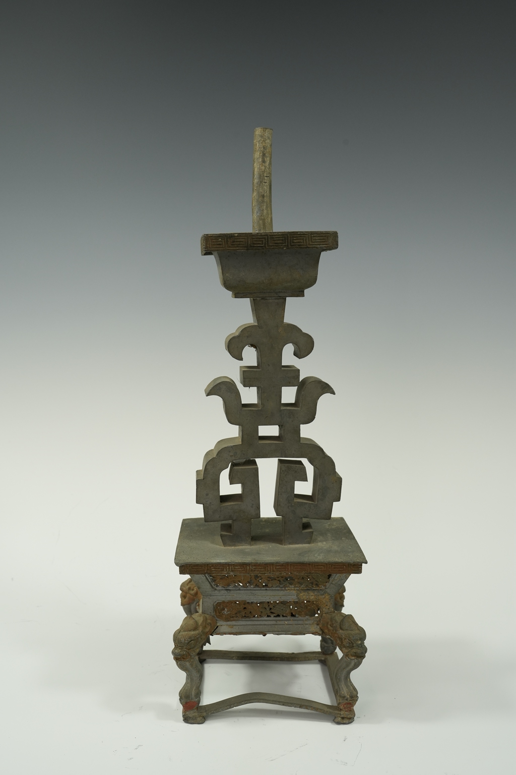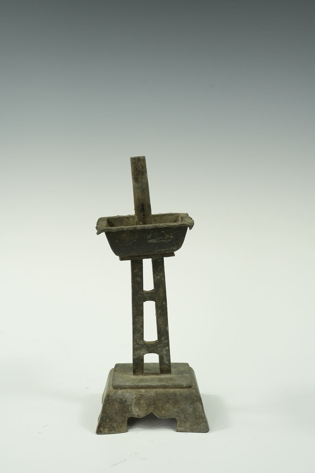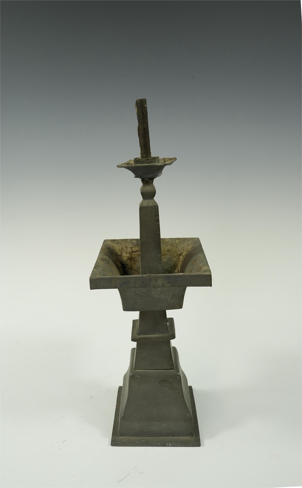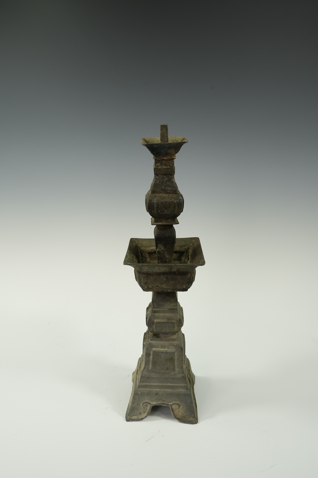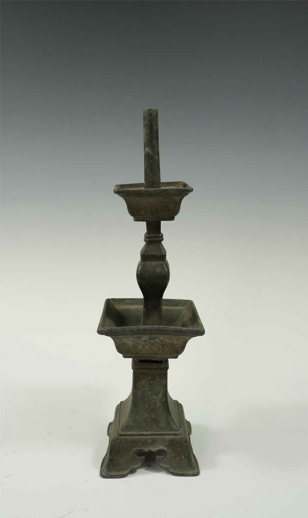 锡制四足方托双层烛台