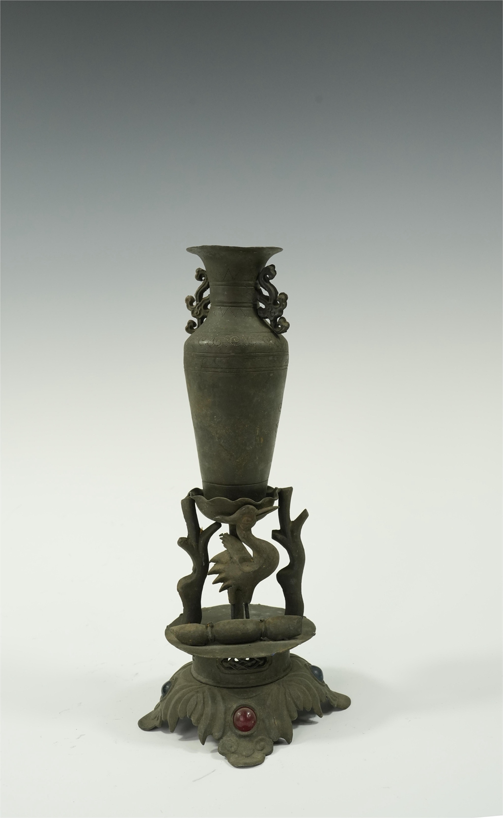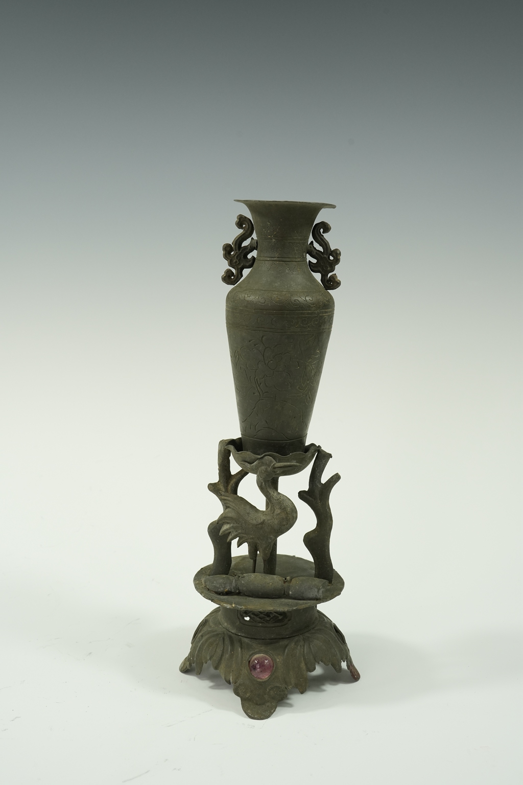 锡制宝瓶仙鹤摆件