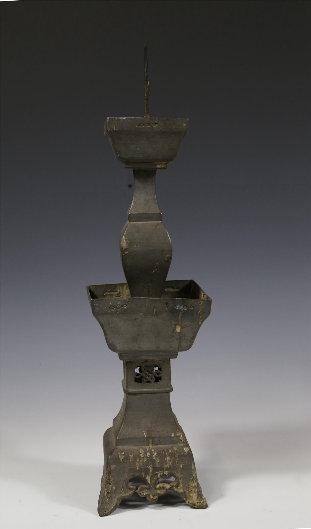 锡制中国结镂空纹四方烛台