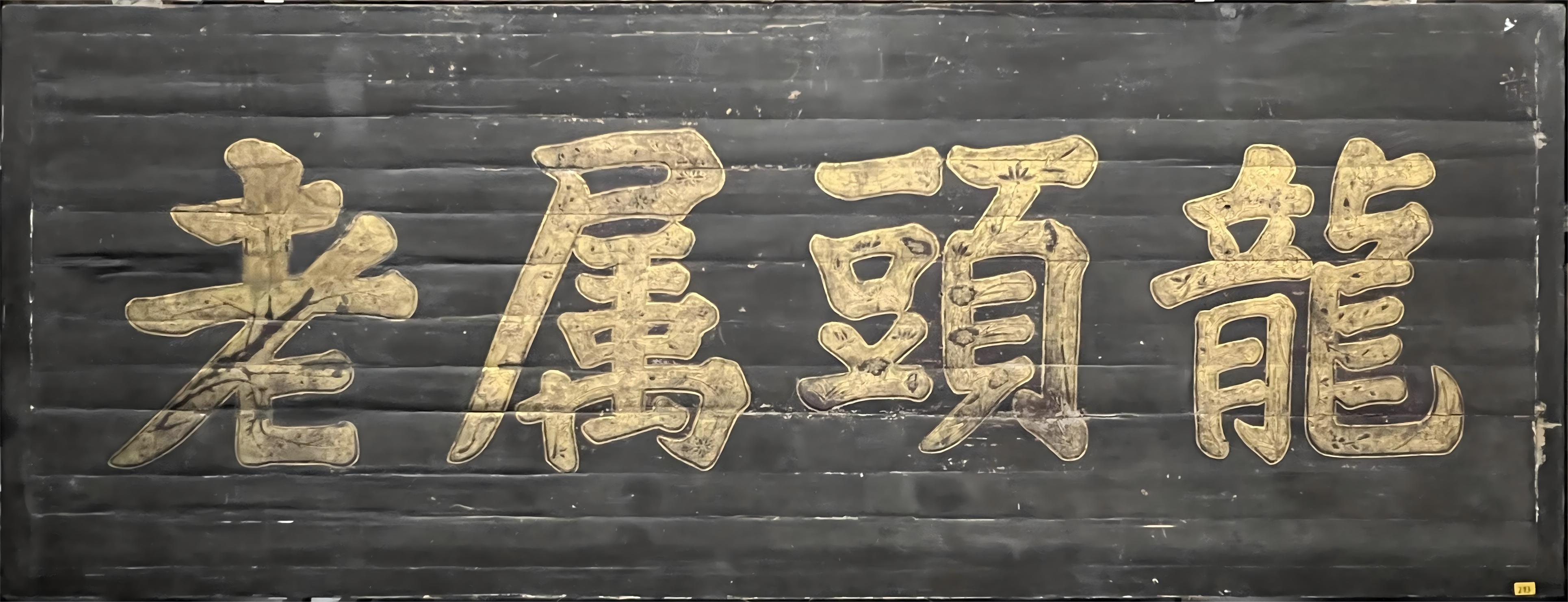 在我馆上千块牌匾中,有一方规格最大的牌匾,匾心内容为“龙头属老”,高1.6米、长4米,想来当年这块匾应是挂在相当气派的建筑之上,其气势该是何等的壮观!